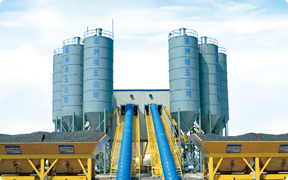 骨料配料站可以設(shè)計成全地倉式,半地倉式或者地上式,可以有三至五個骨料集料倉,采用裝載機(jī)或者自卸車向骨料倉供料,骨料倉卸料門通過氣缸接受計算機(jī)的指令完成啟閉動作,有快、慢兩種卸料方式,計量斗門接受計算機(jī)的指令完成卸料至水平皮帶機(jī),由斜皮帶機(jī)將骨料送至樓上的過渡倉。各骨料均采用單獨(dú)計量方式或者累加計量方式,均能保證準(zhǔn)確計量且工作性能穩(wěn)定,計算機(jī)控制系統(tǒng)可顯示物料的狀態(tài)。具有欠秤補(bǔ)料、超秤報警、扣料、落差自動跟蹤、自動修正功能,保證了骨料配比的精準(zhǔn)。主樓結(jié)構(gòu)